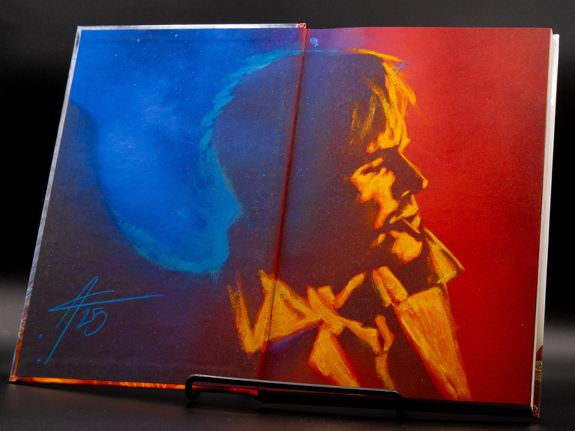 A beautiful, double-page, painting of John Constantine or Swamp Thing on the inside cover of the hardcover collection of Hellblazer: Dead in America. This is a truly unique heirloom volume.